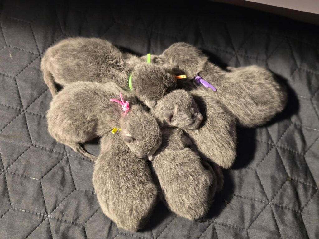 11 lutego 2026 r. na świat przyszedł miot kociąt rosyjskich niebieskich – oznaczony jako miot E4.
